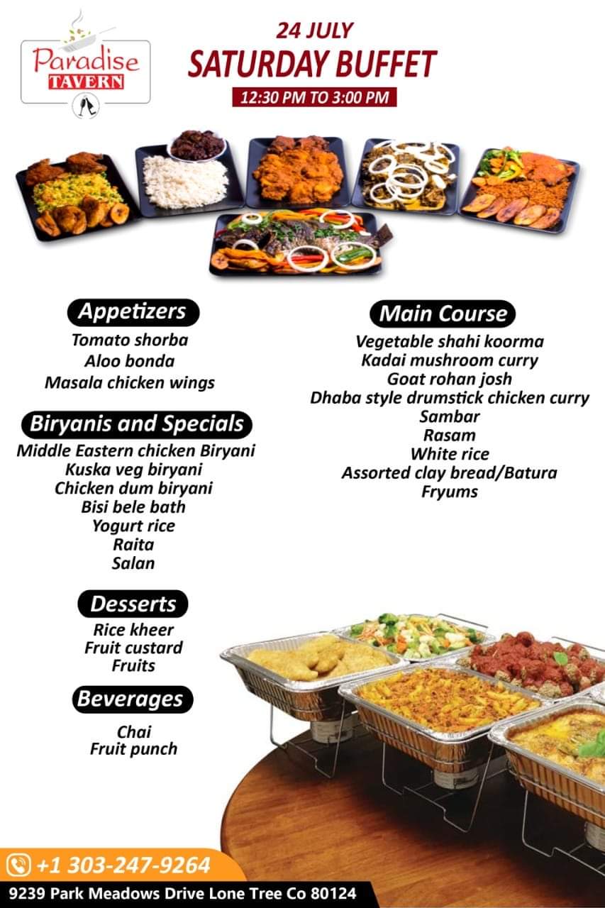 Paradise Tavern Al Twitter Saturday Jul 10th Buffet Menu Paradise Tavern 9239 Park Meadows Drive Lone Tree Co 80124 Buffet Indianbuffet Allyoucaneat Https T Co 0kj5dronjt Twitter